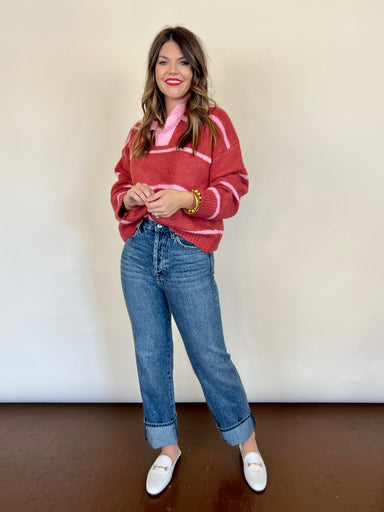 Red, cozy, and a little bit cowgirl! Hannah is wearing a small