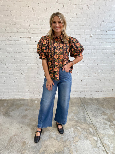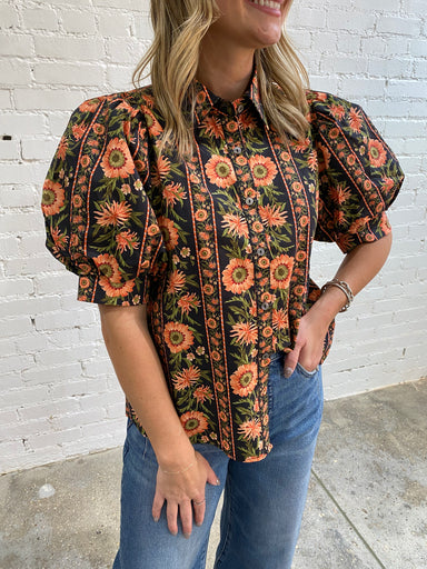 The Hattie Top is a fresh take on a classic. Featuring a delicate floral pattern and romantic puff sleeves, this button-up adds a soft, feminine to...