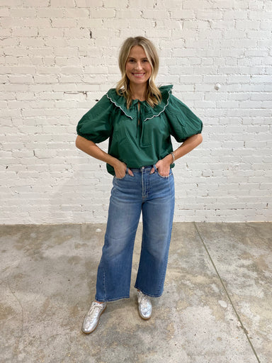 The Gia Top is all about sweet details and timeless style. Featuring a crisp Peter Pan collar, soft puff sleeves, and a rich hunter green hue, this...