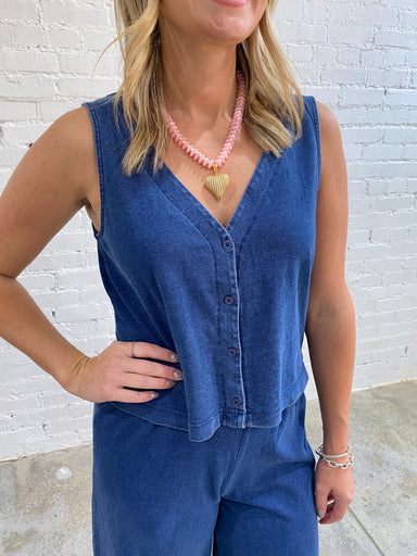 The Lia Top is your new fair-weather staple—where laid-back meets put-together. Made from ultra-soft jersey with the look of washed denim, this but...