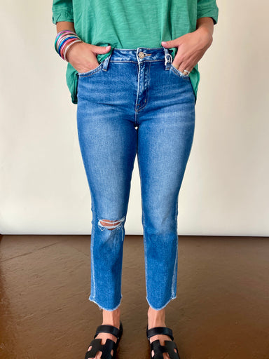You're smooch-worthy. The Smooch Skirt in Moonlight Rinse is a denim ruffle skirt in a romantic dark wash. Clean lines flare out into feminine ruff...