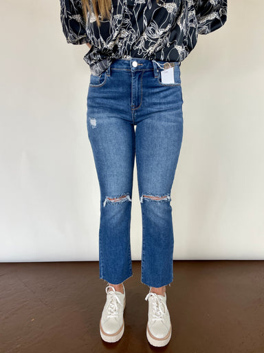 The Westward is a high rise jean with a barrel leg silhouette. Featuring a cinched waist, bowed leg, and slightly tapered ankle against a vintage-i...