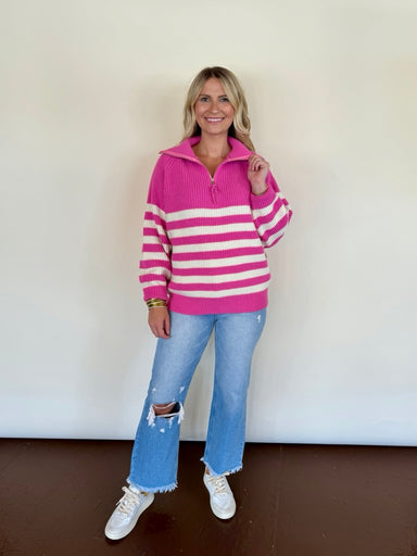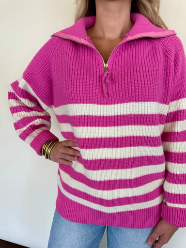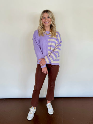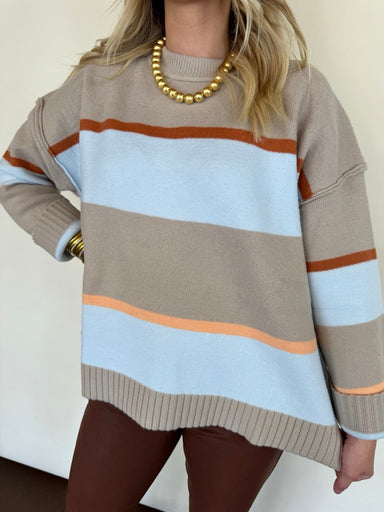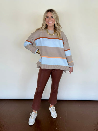 Meet the Hallie Sweater—a fitted button-up that blends timeless style with subtle detail. Designed in rich mocha and soft cream stripes, this sweat...