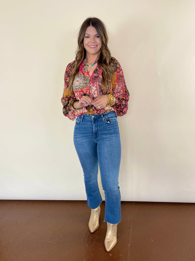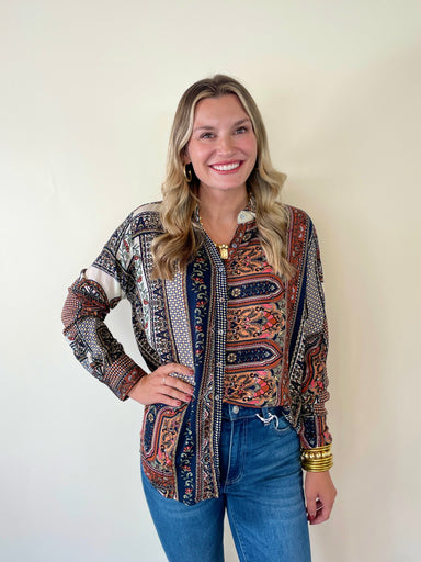 The Hattie Top is a fresh take on a classic. Featuring a delicate floral pattern and romantic puff sleeves, this button-up adds a soft, feminine to...