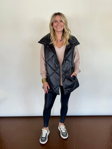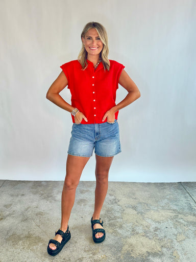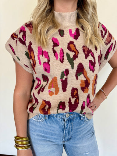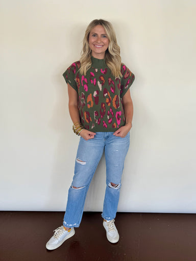 Hammered gold button sweater tank in the cutest leopard print! Runs true to size — Brandi is in a small & Macee is in a large.