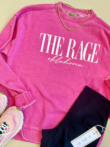 The Rage OK Reversible Sweatshirt. It’s like a 2 in 1 - THE RAGE on one side OK on the other! Brandi is wearing the L/XL for an oversized fit!