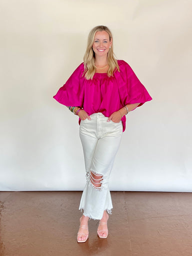 The Hattie Top is a fresh take on a classic. Featuring a delicate floral pattern and romantic puff sleeves, this button-up adds a soft, feminine to...