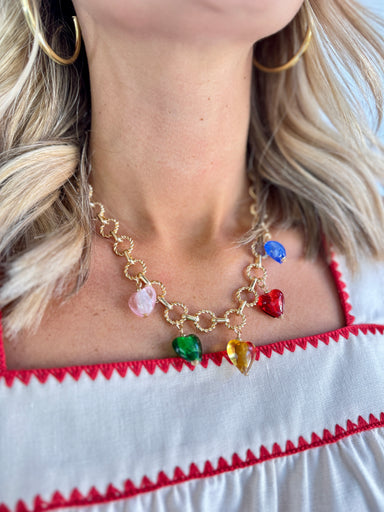 Add a pop of playful charm to your everyday look with the Candy Heart Charm Necklace! This gold-toned beauty features a unique chain design and dai...